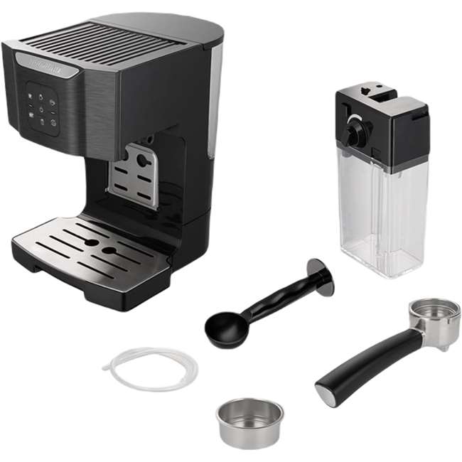 Мерная ложка, руководство по эксплуатации, сервисная книжка, дозатор фильтродержателя (2 шт.), большая трубка подачи молока, фильтродержатель, резервуар для молока